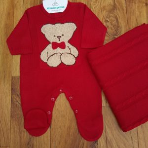 Saída de maternidade em tricot Ursinho Xadrez