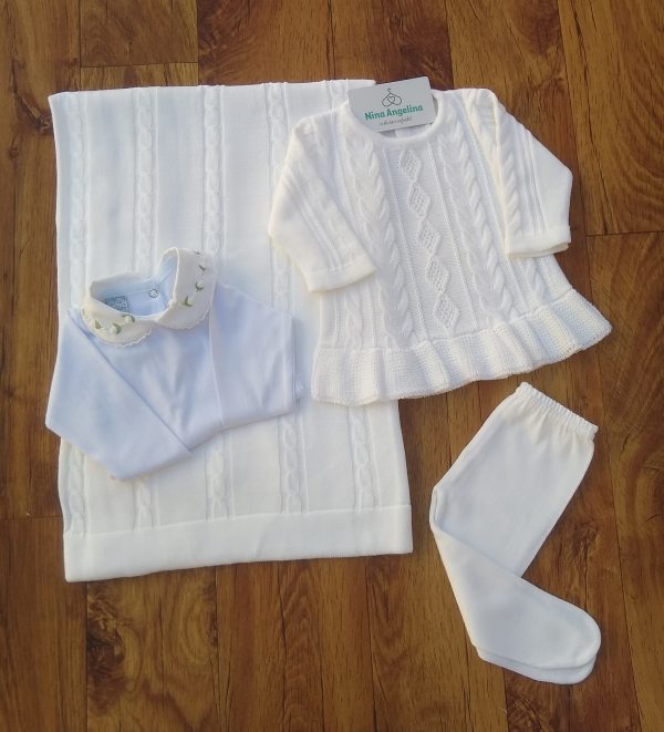 Kit Saída de Maternidade em tricot de alta qualidade, com linha 100% acrílica.