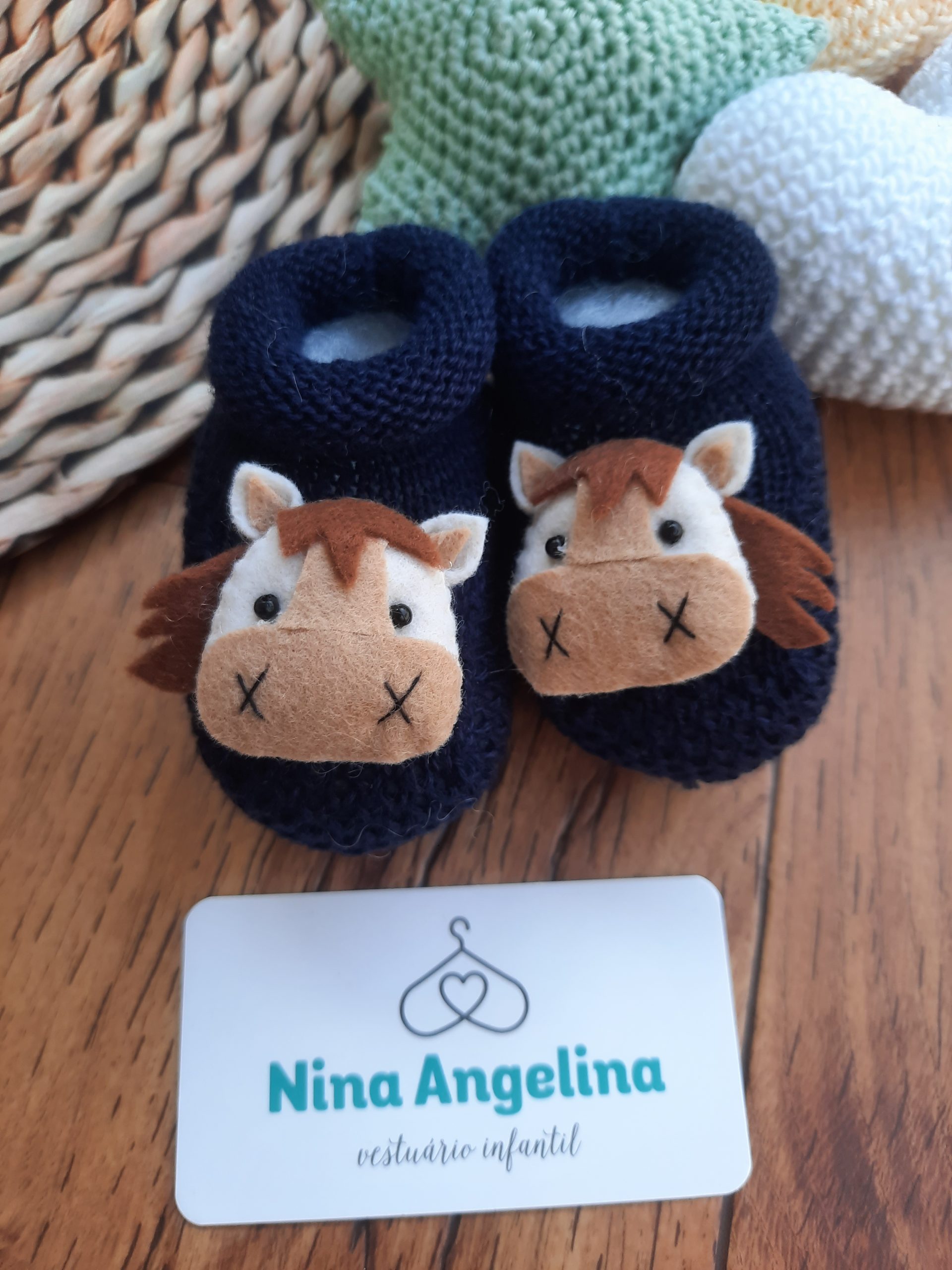 Sapatinho em Tricot com Aplique de Cavalinho.